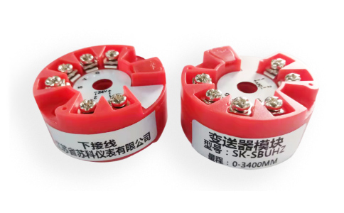 SK-SBUHZ型液位變送器模塊是將輸入的電阻信號轉(zhuǎn)換成線性輸出的4~20mA電流信號,從而達(dá)到與磁翻板液位計(jì)配套使用,通過磁翻板液位計(jì)內(nèi)部浮子的位置的變化而將磁翻板液位計(jì)內(nèi)部對應(yīng)的液位變化線性地對應(yīng)輸出液位高度。