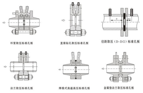 ②各種孔板流量計的結構簡圖