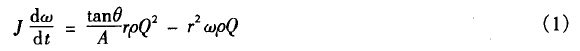 渦輪流量計以動量矩守恒定理為基礎(chǔ)的一種速度式流量儀表,對非穩(wěn)定流由于轉(zhuǎn)子葉片和相關(guān)傳動裝置的共振、轉(zhuǎn)子的轉(zhuǎn)動慣量、脈動的形狀、轉(zhuǎn)子和齒輪摩擦阻力及轉(zhuǎn)子瞬時轉(zhuǎn)矩等因素影響,使渦輪流量計產(chǎn)生很大的誤差,用機翼理論來分析作用在轉(zhuǎn)子上的驅(qū)動力矩和阻力矩,可得到其運動方程: