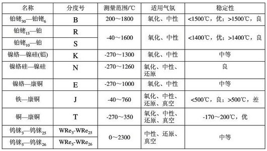 工業(yè)用熱電偶的測(cè)溫范圍見下表: