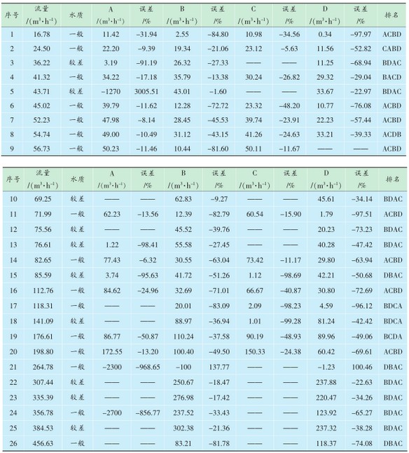 表2 一般水質(zhì)時流量計誤差統(tǒng)計
