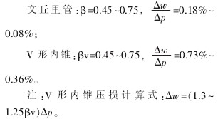標(biāo)準(zhǔn)節(jié)流裝置(孔板、噴嘴和文丘里管)和 V 形內(nèi)錐節(jié)流裝置的壓損如下: