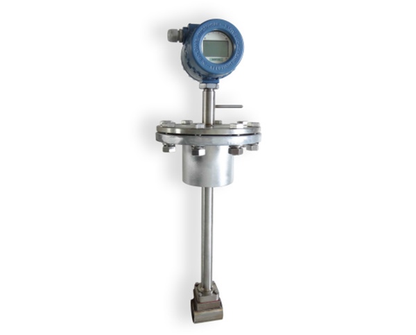 按國際標準化組織IS07145(在環形截面封閉管道中的流體流量測定—在截面一點的速度測量法),采用埋入壓電晶體的渦街測速探頭,插入大口徑工業管道內,將卡門旋渦頻率轉換為與流量成正比的電流或電壓脈沖信號或4~20mADC電流信號。
