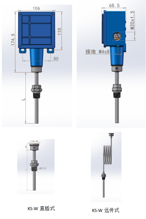 直插型(溫包外徑Φ10mm,可定制其它規格,可選) |
