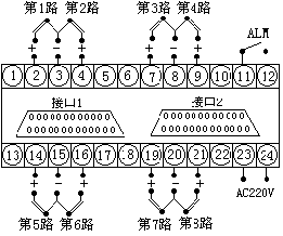 ⑵1-8通道分別獨(dú)立報(bào)警,繼電器輸出觸點(diǎn)容量 AC220V/1A